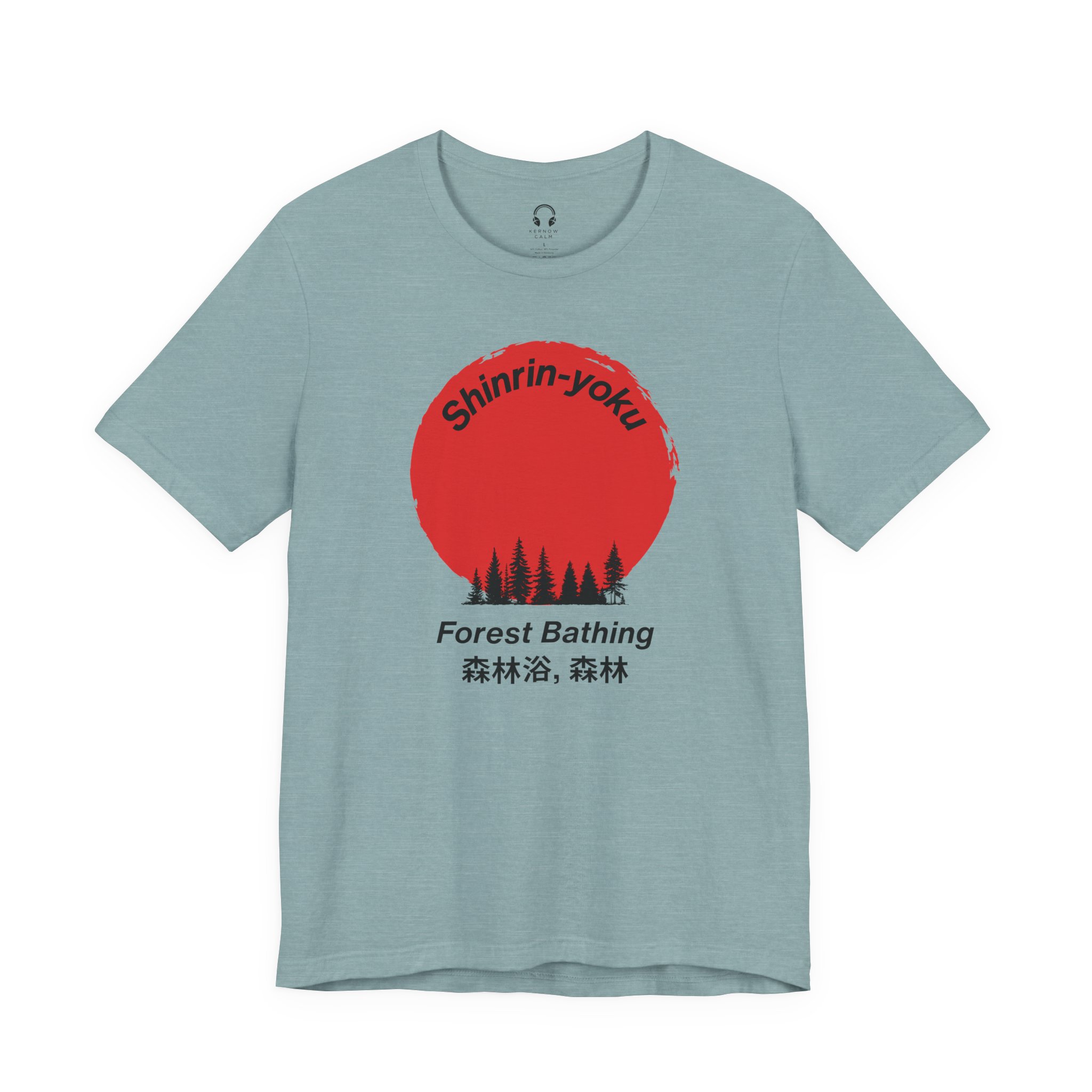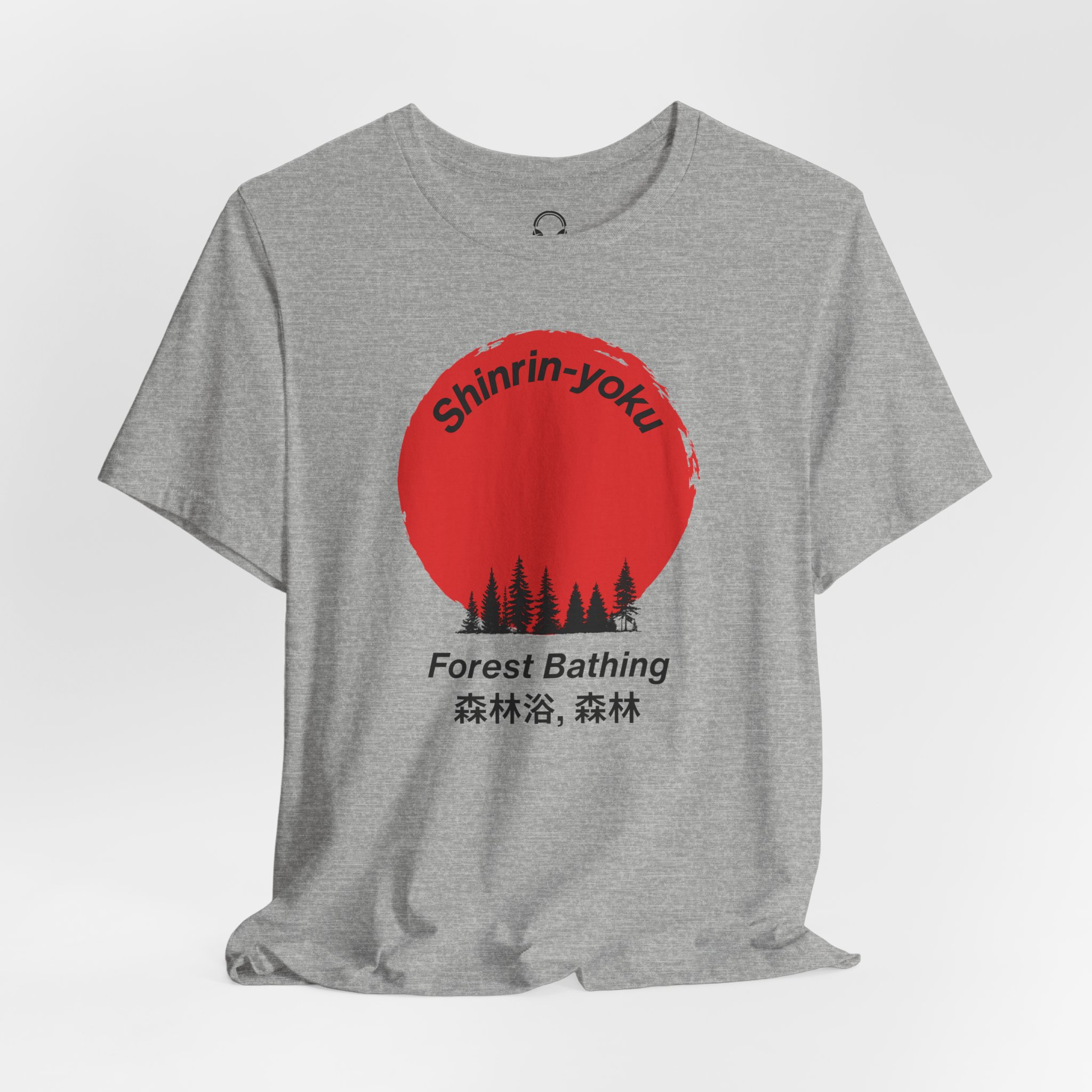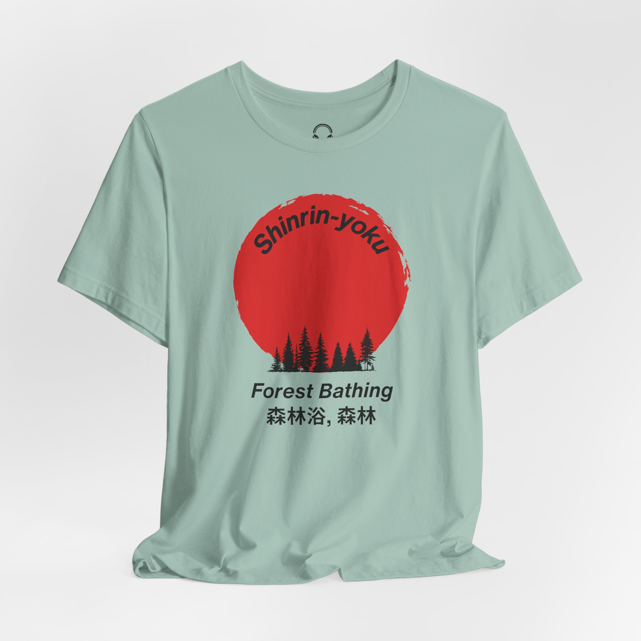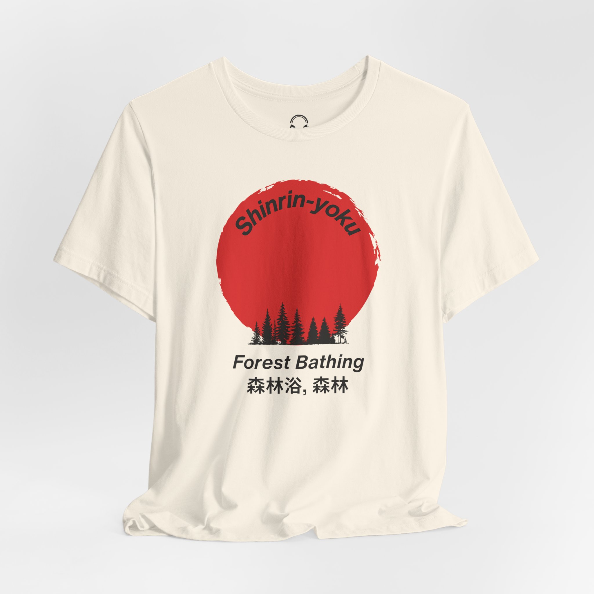 This striking design celebrates the Japanese practice of shinrin-yoku – immersing yourself in the healing power of nature. The bold red sun and forest silhouette capture the essence of mindful forest bathing, perfect for those who understand that the best therapy doesn’t require a prescription, just trees!